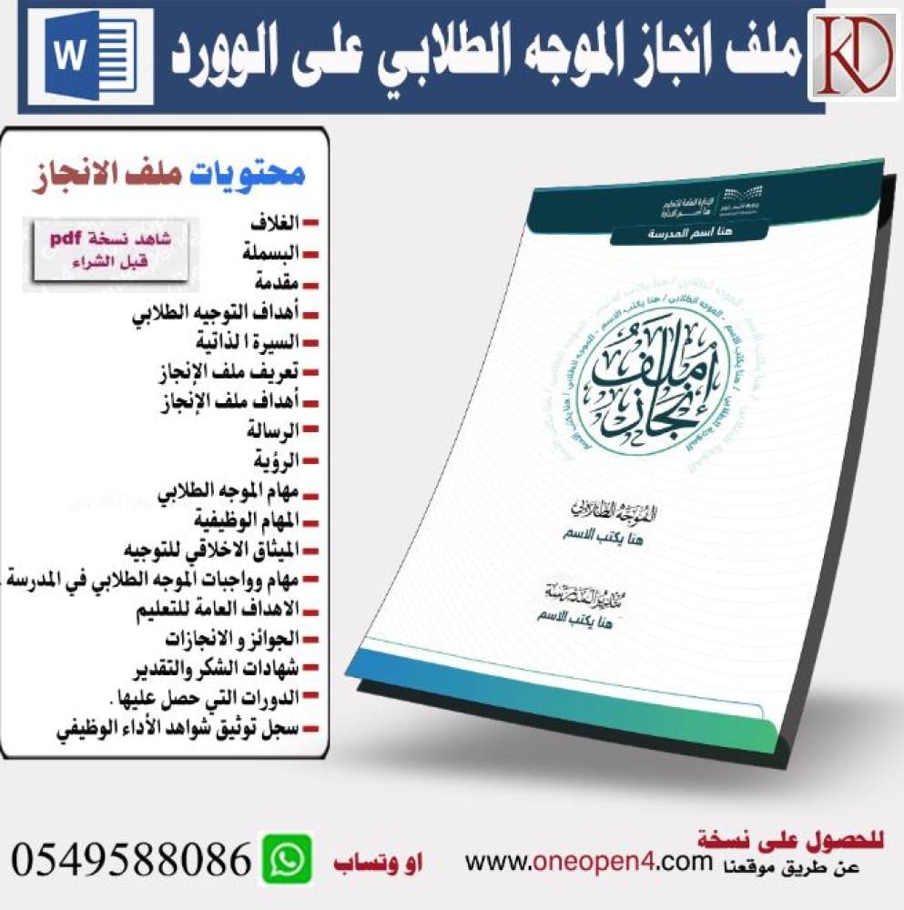 ملف انجاز الموجه الطلابي (ملف وورد)