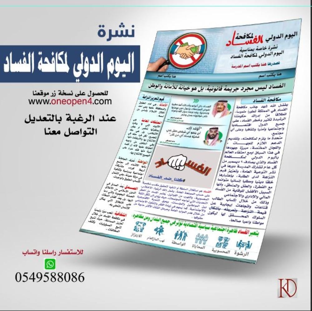 الجهة الصادرة للنشرة واسم المعلم او رائد النشاط واسم مدير المدرسة