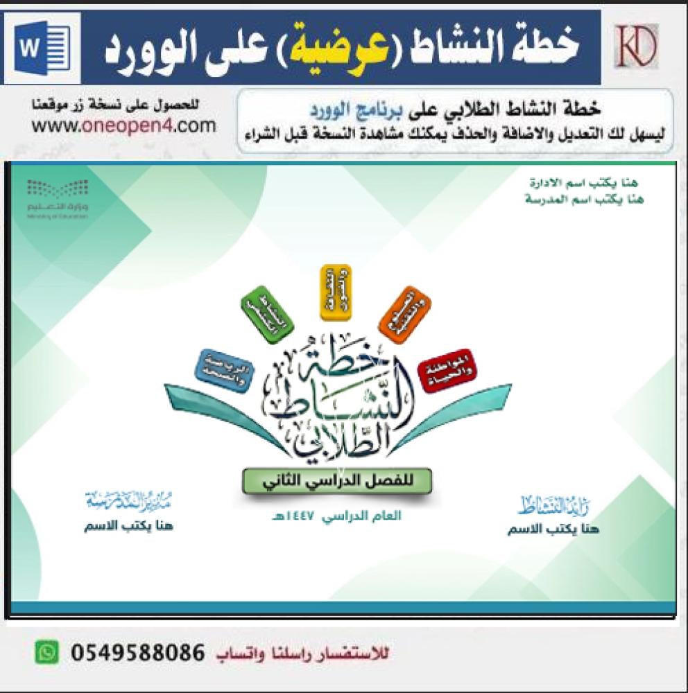 ملف خطة النشاط الطلابي عرضي (الفصل الثاني )